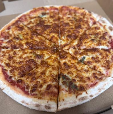 White sauce, sliced potato, honey, truffle oil, Parmesan, Gorgonzola, and mozzarella