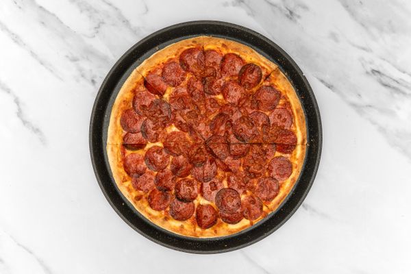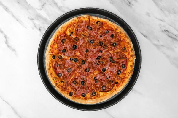 Napoletana sauce, salami, chilli, olives, and mozzarella
