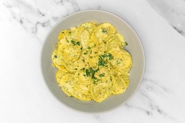 Basil pesto, olive oil, and Parmesan. Served with your selection of pasta spaghetti, penne, or ravioli