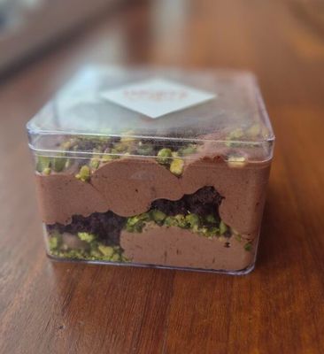 Chocolate and Pistachio Mousse with Chocolate Crumble.